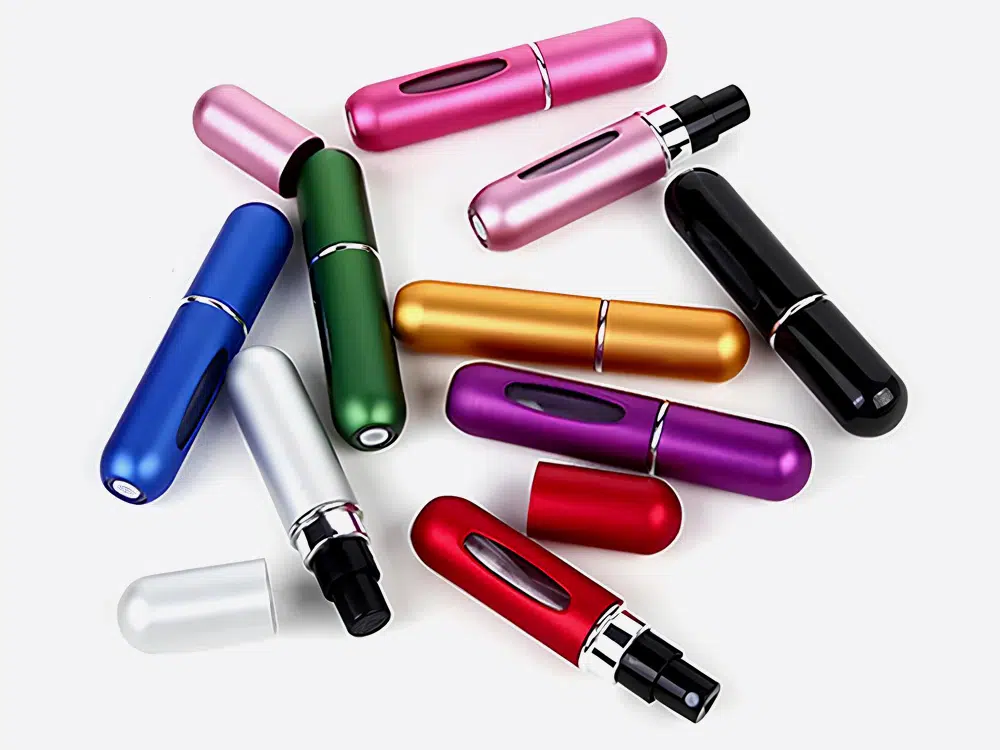 SPÉCIFICATIONS: Capacité de 5ml (0.16 fl.oz.) | Corps en aluminium | Pompe et réservoir en plastique | Vaporisateur naturel | Fenêtre transparente | Facilement rechargeable jusqu'à 1000x | Pas de fuites | Marqué avec le logo Paris Elysees | Plusieurs couleurs